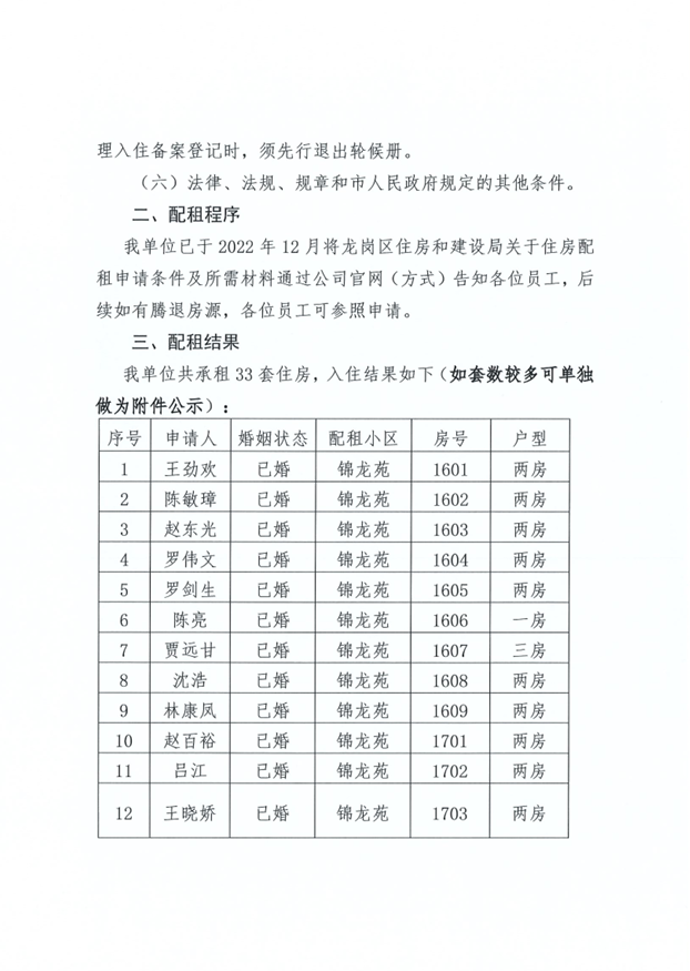 關于保障性租賃住房配租相關事項的公示